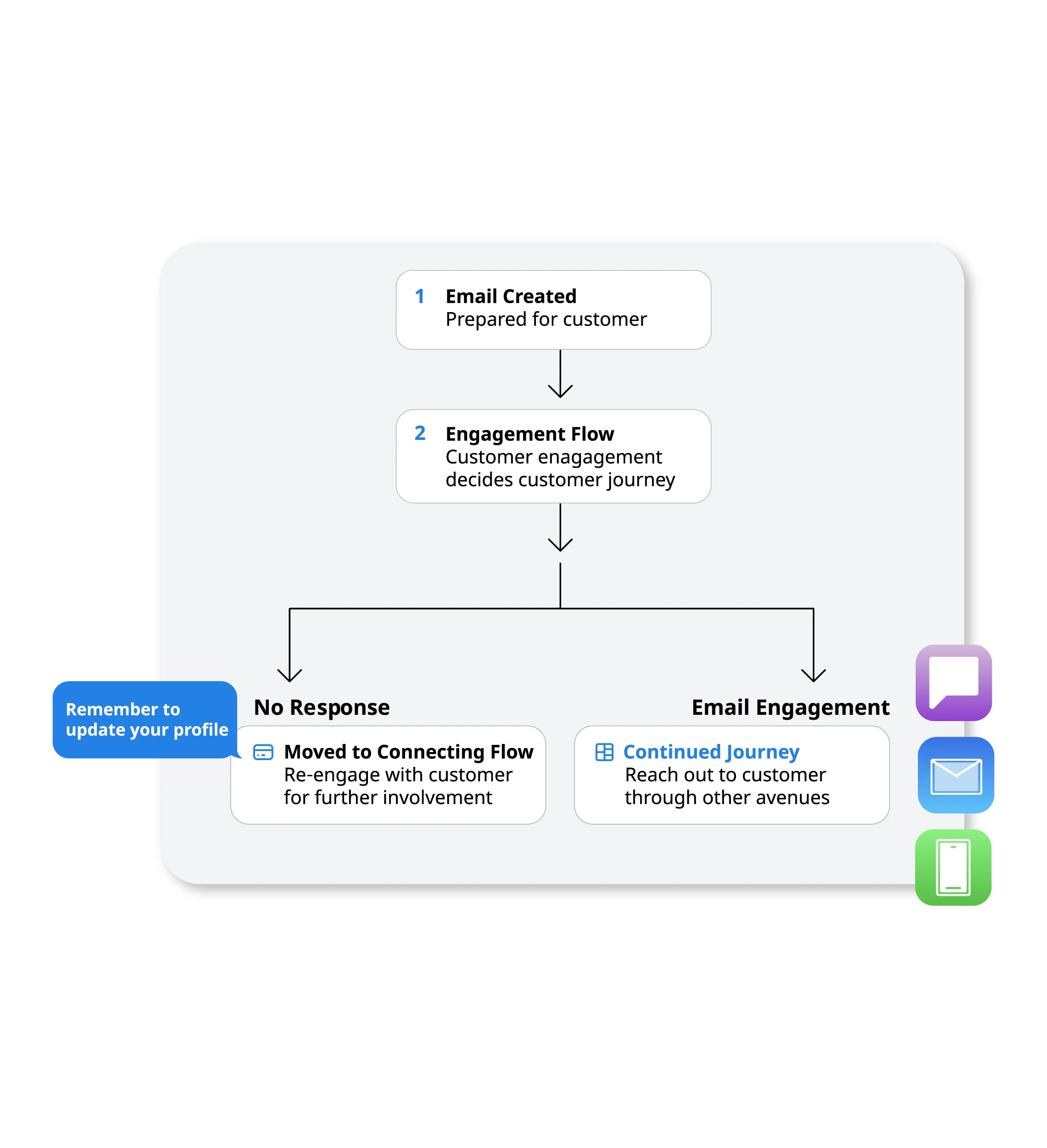 When a critical moment fires, AI decisioning triggers the right action, suppresses conflicts, or routes to an agent. No campaign cycle. No delay.