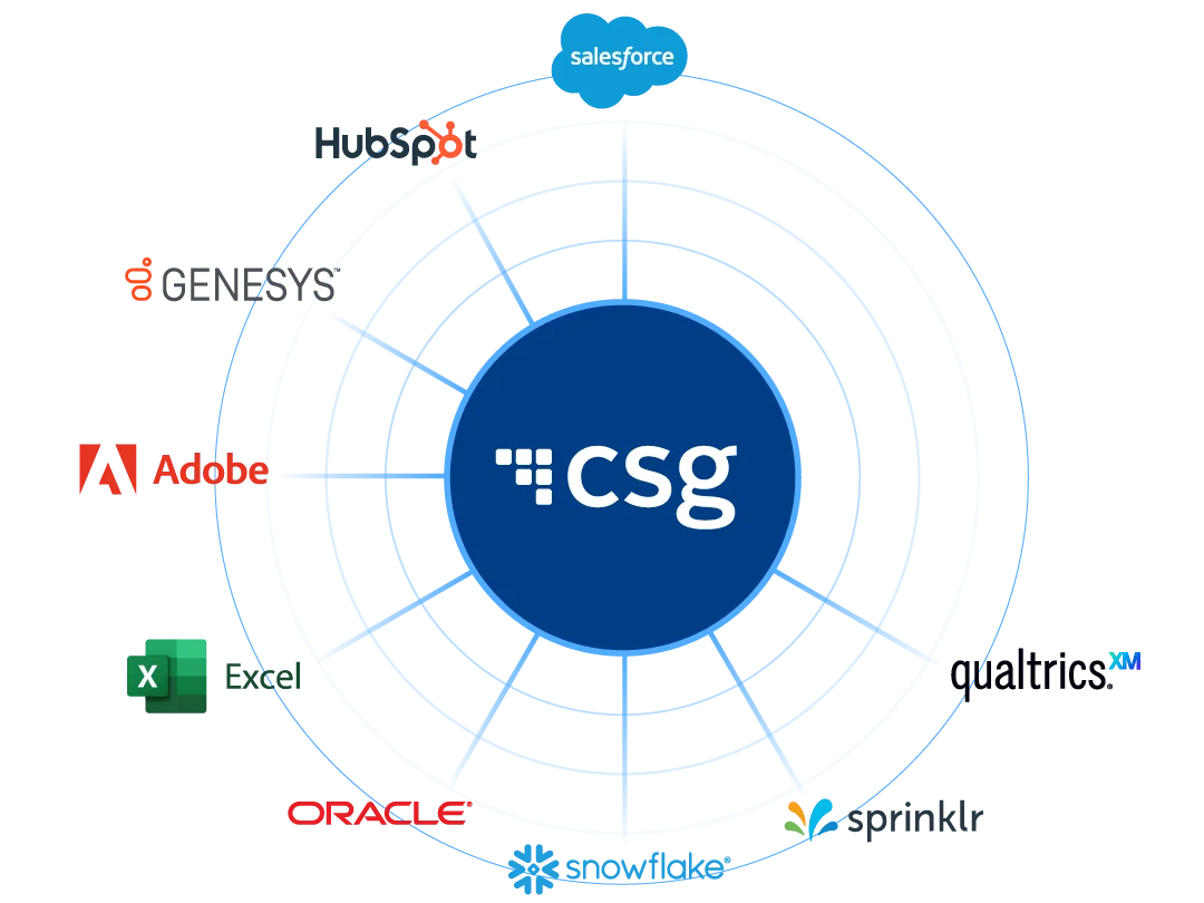 CSG Xponent works with your existing systems such as billing platforms, CRM, contact center tools, marketing automation, and data infrastructure, without a rip-and-replace approach.