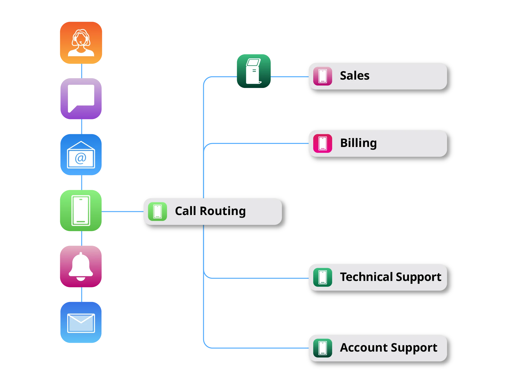 Every call goes through four steps between the customer dialing and the right agent picking up. Getting each one right is what keeps transfers low and resolution rates high.